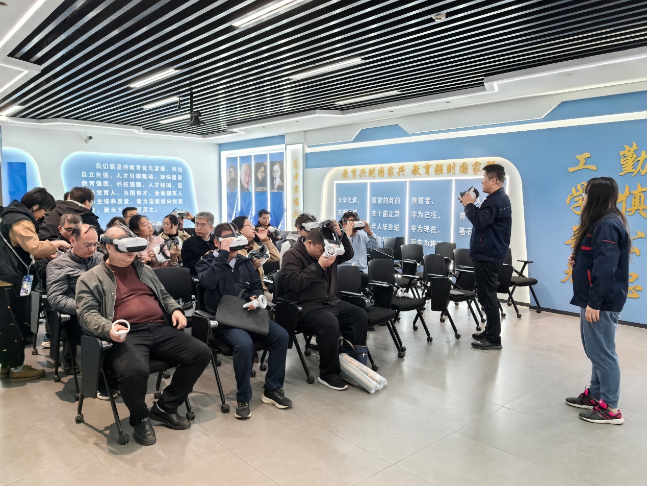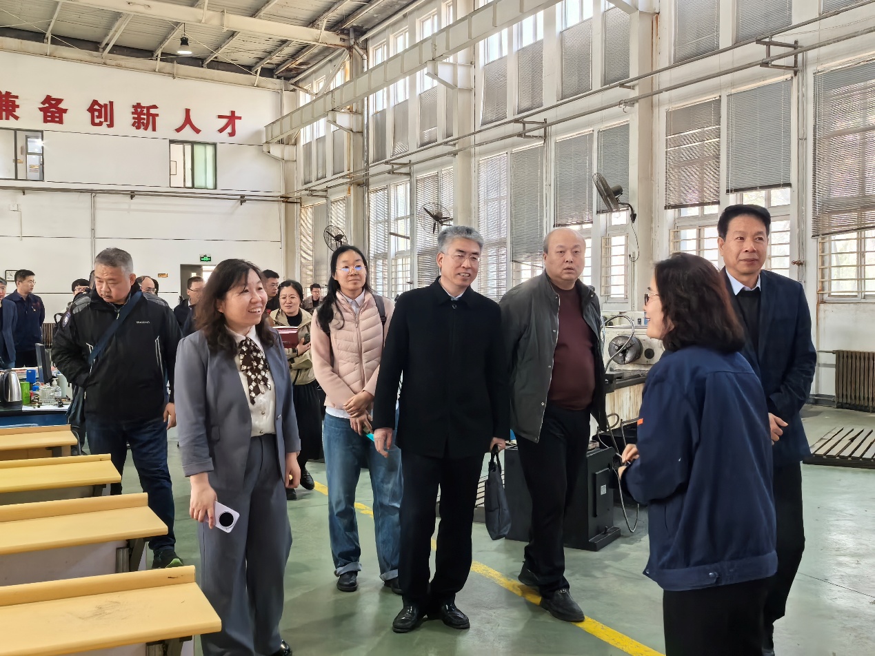 任主任一行首先实地参观了车铣车间、智能制造产线、铸造/精密铸造、激光加工、数控加工、电工电子实训室、陶艺教室、信创实验室和虚拟仿真中心。参观过程中,刘主任及相关实训室负责人详细介绍了中心的设备资源配置、教学运行模式及产教融合人才培养等情况。双方边参观边交流,围绕智能制造工程实践、虚拟现实技术实践训练等内容进行了现场探讨。